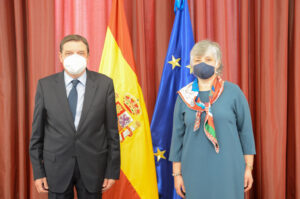 10 de febrero de 2021. Una delegación de la Asociación del Cuerpo Nacional Veterinario, encabezada por su presidenta, Mª Josefa Lueso, se ha reunido con el Ministro de Agricultura, Pesca y Alimentación, Luis Planas, a quienes ha agradecido su gran esfuerzo, desde el servicio público, para seguir elevando el nivel de la agricultura y la ganadería españolas.